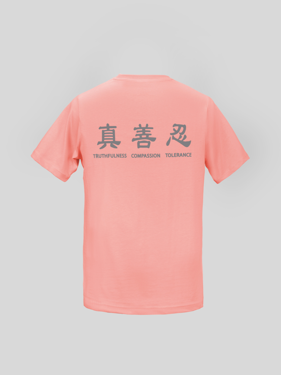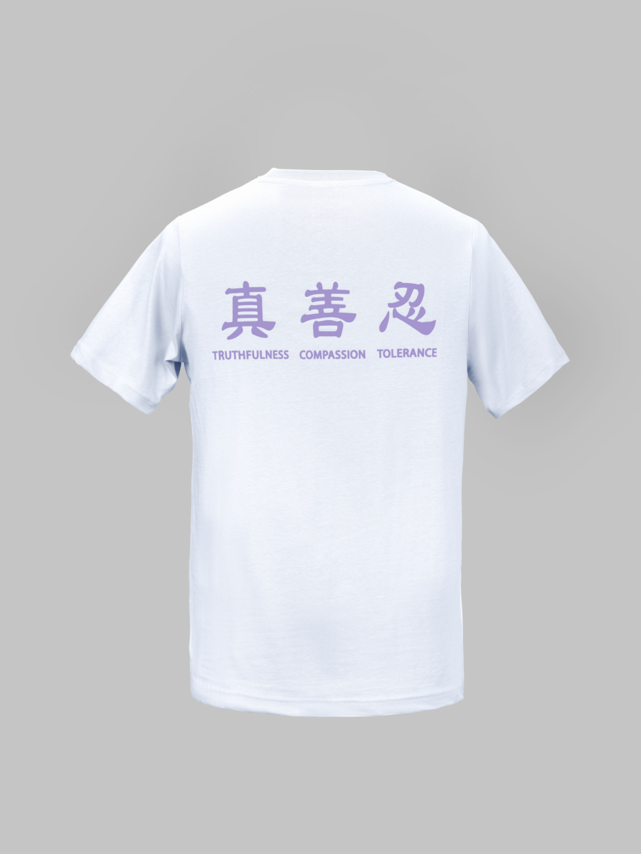 100%純棉面料,柔軟舒適,透氣排汗。 T恤衫背面印有「真、善、忍」宇宙真理。穿上它,將這美好、永恆的價值帶給身邊更多的人。