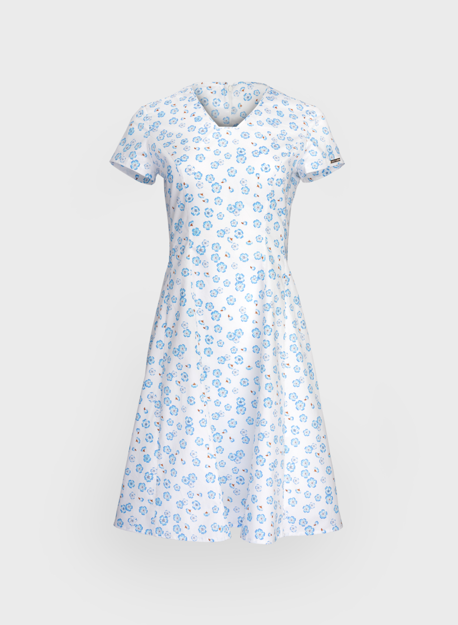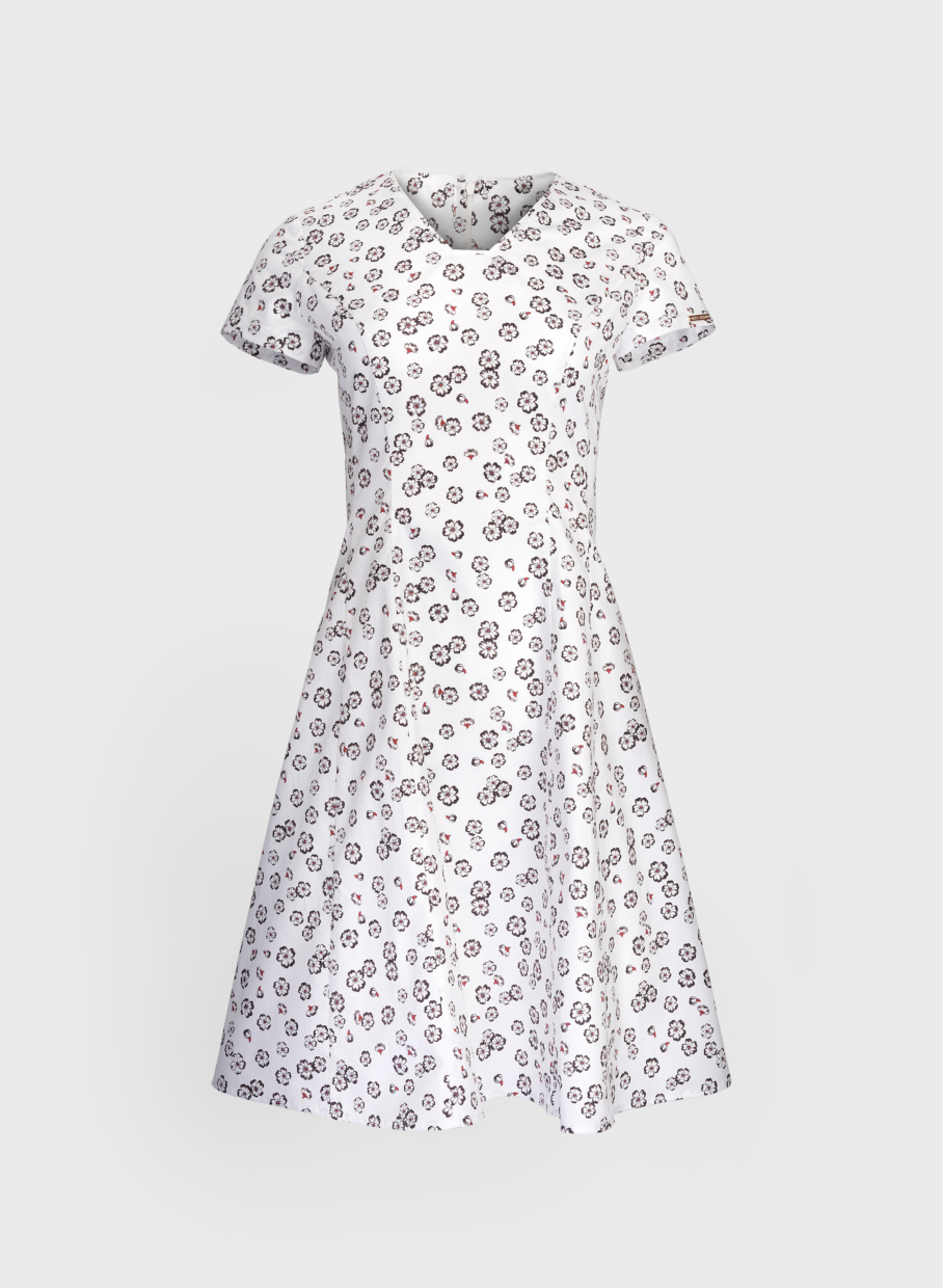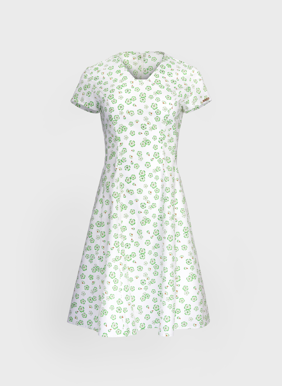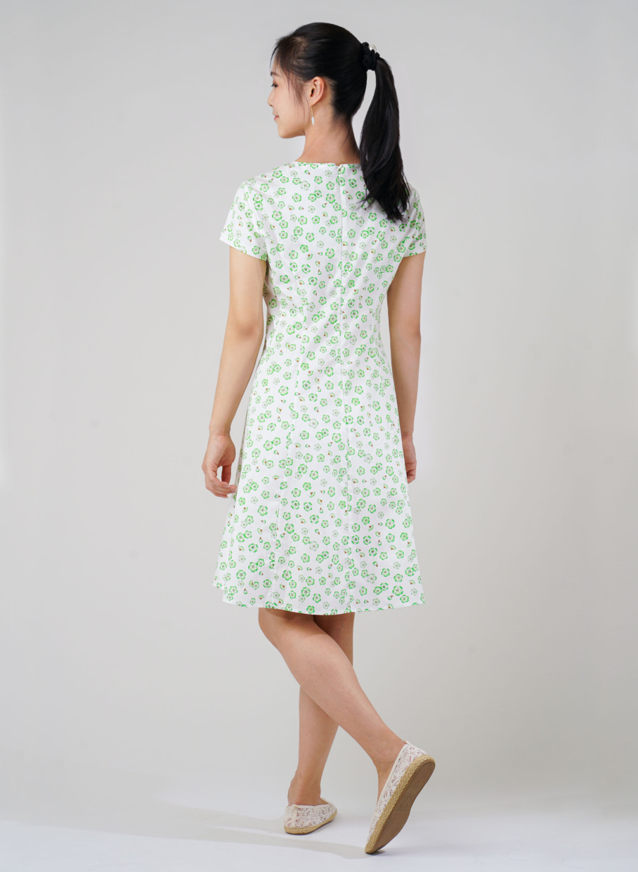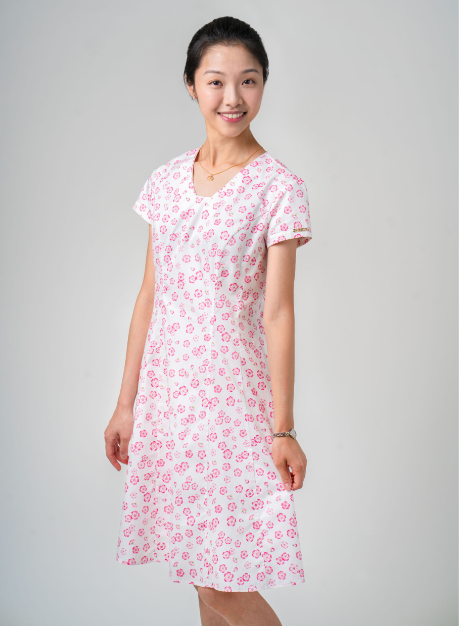 精緻小方領、端莊大方、復古典雅。九片裙收腰及下襬變寬的剪裁設計、自然地調節身形。高級棉質、舒適透氣、質感爽滑,布料耐久、保型性好。