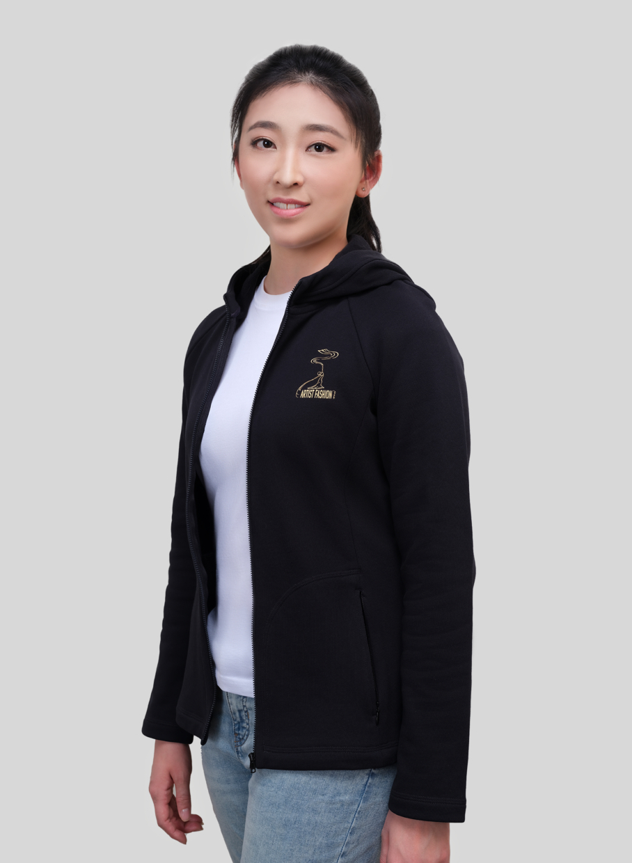 這款拉鍊帽衫,修身設計襯托出女性優美的身姿。精心選擇優質100%純棉面料,內裡由細線製成,具有更高的耐用性和柔軟、舒適的手感。服裝背面「真、善、忍」的印字,在輕鬆休閒中展現你崇尚的生活價值。夏日微涼的早晨或者傍晚,可以搭配「藝術家時裝」的T恤衫。